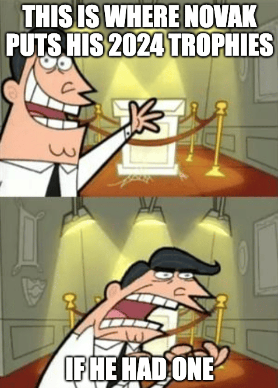 First, Djokovic not winning a title by May is like Steph Curry not scoring a 3-pointer for half the season. It just doesn’t happen. And yet, here we are doing a double-take because Novak’s 2024 trophy case is looking emptier than my snack cabinet (I snack a lot).